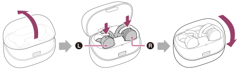 Controleer de indicaties van links en rechts op de oplader en de speler wanneer u de speler in de oplader opbergt.