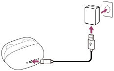 - Sluit de USB Type-C-kabel aan op de USB Type-C-poort van de oplader en een USB-netadapter. (USB Type-C-kabel: bijgeleverd) Sluit de USB-netadapter vervolgens aan op het stopcontact . Of gebruik de USB Type-C-kabel om de oplader op een ingeschakelde computer aan te sluiten.
