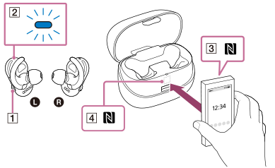 Keď nabíjacie puzdro priložíte k smartfónu kompatibilnému s funkciou NFC, prehrávač sa spáruje so smartfónom. Jednoduchým úkonom môžete vytvoriť pripojenie cez Bluetooth alebo ho ukončiť.