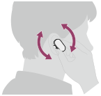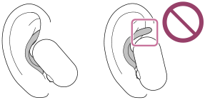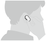 - Nasaďte si prehrávač do uší, pokiaľ sú ešte podložky slúchadiel a uši suché.