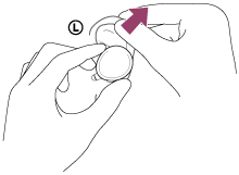 - Nástavec slúchadla sa do ucha zasunie jednoduchšie, ak pri pootočení slúchadla mierne potiahnete za vrchnú časť ucha.