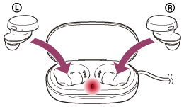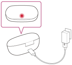 - Če med polnjenjem slušalke ali ohišje za polnjenje zaznajo težavo zaradi enega od spodaj navedenih vzrokov, indikatorska lučka (rdeča) na ohišju za polnjenje utripa. V tem primeru jih znova napolnite v navedenem razponu temperature pri polnjenju. Če težave ne odpravite, se posvetujte z najbližjim prodajalcem izdelkov Sony.