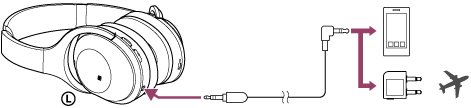 - Vă puteți bucura de muzică conectând cablul de căști inclus la setul de căști, chiar și când setul de căști este oprit. În acest caz, funcția de anulare a zgomotului nu este disponibilă.