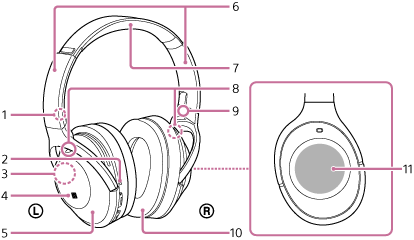 Sveti rdeče ali modro za prikaz stanja napajanja ali komunikacije slušalk. - Gumb