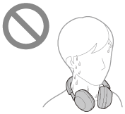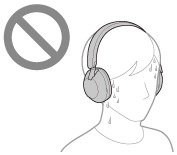 Kuulokkeiden koskettaminen hikisillä käsillä tai kuulokkeiden käyttäminen tilanteissa, joissa hiki voi kastella kuulokkeet