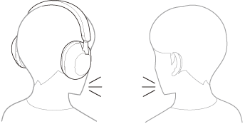 Se o Speak-to-Chat for ativado previamente, o modo Speak-to-Chat é iniciado automaticamente quando falar com alguém. Para facilitar a audição, o sistema de auscultadores coloca em pausa ou silencia a música que está a ser reproduzida e utiliza os microfones para captar a voz da pessoa com quem estiver a falar.