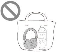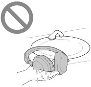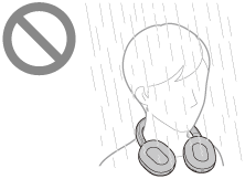 Če mokre slušalke polnite ali vklopite, lahko to povzroči požar ali okvaro. Slušalke čim manj stresajte in ušesne blazinice obrnite navzdol ter pustite, da voda izteče iz ušesnih blazinic. Nato slušalke obrnite pokonci in pod vhodno vtičnico za kabel slušalk ter vrata USB Type-C položite suho krpo, dokler voda ne preneha iztekati iz notranjosti. Po tem slušalke pustite na senčnem dobro prezračenem mestu, dokler se popolnoma ne posušijo.