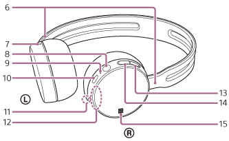 Свържете компютър или USB AC адаптер (не е включен в комплекта) към този порт чрез предоставения micro-USB кабел, за да заредите слушалките. - Микрофон