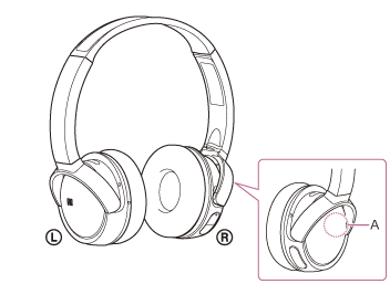 Odstranite ovire med anteno naprave Bluetooth, s katero želite povezati slušalke, in vgrajeno anteno v slušalkah. Antena slušalk je vgrajena na mestu, ki je na sliki prikazano s prekinjeno črto.