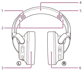 Pripojením počítača alebo USB napájacieho adaptéra (nedodáva sa) k tomuto portu pomocou dodaného kábla micro-USB môžete nabíjať slúchadlá. - Mikrofón