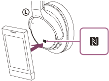 - Smartfón priložte k značke N na slúchadlách. Nechajte slúchadlá priložené k smartfónu, kým smartfón nezareaguje.