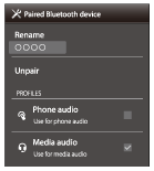 На смартфона Android, свързан със слушалките, махнете отметката или от [Phone audio] (HFP), или от [Media audio] (A2DP).Например: за да свържете само “Media audio” (A2DP)