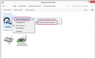 - Щракнете с десния бутон [WH-H800 (h.ear)] в екрана [Devices and Printers].