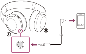 - 即使电池耗尽或关闭耳机,通过将附带的耳机连接线连接到耳机,也可以将耳机用作普通的有线耳机。