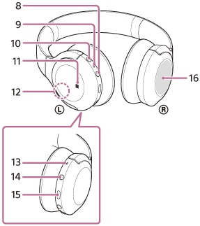 通过市售USB交流电源适配器将耳机连接到交流电源插座,或用附带的USB Type-C连接线将耳机连接到电脑,可对耳机充电。 - 触摸传感器控制面板