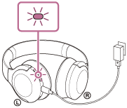 - 如果耳机在充电时由于以下原因检测到问题,指示灯(红色)将会闪烁。在此情况下,请在充电温度范围内再次充电。如果问题仍然存在,请联络附近的Sony经销商。