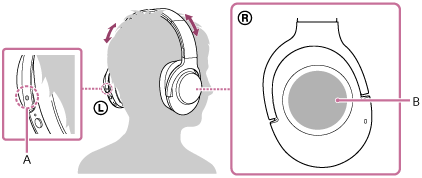 левият модул на слушалките има релефна точка. Бъдете внимателни и не докосвайте контролния панел на сензора за докосване, когато носите слушалките.
