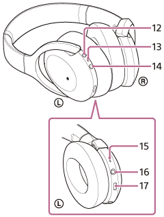 Използва се, когато се превключва функцията за потискане на шума и режимът на обкръжаващ звук, както и в други случаи. - Индикатор (червен/син)
