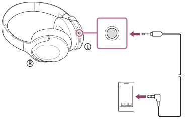 - Pentru a vă bucura de muzică High-Resolution Audio sau a utiliza funcția de anulare a zgomotului/modul Sunet ambiental, porniți setul de căști.