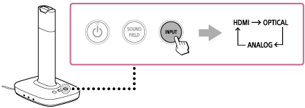 - Натиснете неколкократно бутона INPUT на процесора, за да промените входа спрямо свързания телевизор.