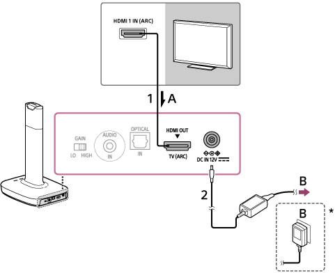 - Připojte konektor HDMI OUT procesoru ke konektoru HDMI se značkou „ARC“ na televizoru pomocí vysokorychlostního kabelu HDMI podporujícího Ethernet (prodává se samostatně).