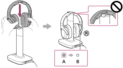(voeding) van de processor kunnen tijdens het opladen niet gebruikt worden. - Als u de hoofdtelefoon lange tijd niet hebt gebruikt, is het mogelijk dat de levensduur van de oplaadbare batterij korter is geworden. U kunt dit verbeteren door de batterij verschillende keren op te laden en volledig te ontladen.