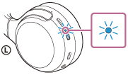 Βεβαιωθείτε ότι η ενδεικτική λυχνία (μπλε) συνεχίζει να αναβοσβήνει αφού σηκώσετε το δάχτυλό σας από το κουμπί. Θα ακούσετε τις φωνητικές οδηγίες "Power on" (Έναρξη τροφοδοσίας).