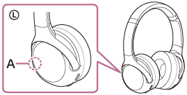 - Odstranite ovire med anteno naprave Bluetooth, s katero želite povezati slušalke, in vgrajeno anteno v slušalkah. Antena slušalk je vgrajena na mestu, ki je na sliki prikazano s prekinjeno črto.
