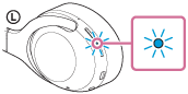 Kontrollér, at indikatoren (blå) fortsætter med at blinke, efter at du fjerner fingeren fra knappen. Du vil høre stemmevejledningen "Power on" (Tænd).