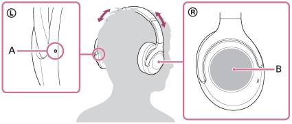 (esquerda) tem um ponto tátil.Tenha cuidado para não entrar em contacto com o painel de controlo com sensor tátil quando usar o sistema de auscultadores.
