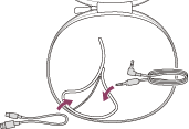 Amikor befejezte a headset használatát, a bal és a jobb oldali egység elforgatásával csukja össze a headsetet, az egyik egységet hajtsa be a fejpánt felé, és helyezze be a headsetet a mellékelt hordozótokba.