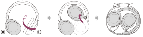 Kada završite sa upotrebom slušalica sa mikrofonom, okrenite levu i desnu jedinicu tako da ih poravnate, preklopite jednu jedinicu prema rajfu za glavu i smestite ih u isporučenu kutijicu za nošenje.