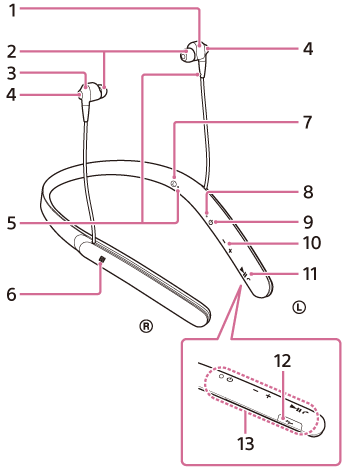 Желтый: отображение состояния режима окружающего звука. - Кнопка NC/AMBIENT (шумоподавление/режим окружающего звука)