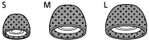 Ørepudernes størrelse kan fastslås ud fra antallet af stiplede linjer indvendigt forneden på ørepuderne.