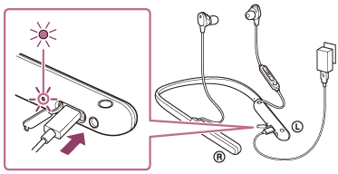 - Dacă setul de căști nu este utilizat pentru o perioadă lungă de timp, indicatorul (roșu) s-ar putea să nu se aprindă imediat în momentul încărcării. Așteptați până când se aprinde indicatorul (roșu).