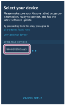 - Din [AVAILABLE DEVICES] de pe ecranul [Select your device], selectați [WI-1000XM2] sau [LE_WI-1000XM2].