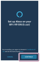- De pe ecranul [Set up Alexa on your WI-1000XM2] sau [Set up Alexa on your LE_WI-1000XM2], atingeți [CONTINUE].