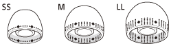 Velikost konic ušesnih čepkov je označena s številom črtkanih črtic na spodnji strani notranjosti konic ušesnih čepkov.