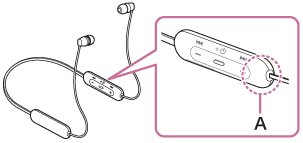 - قم بإزالة أي عوائق بين الهوائي الخاص بالجهاز المجهز بخاصية Bluetooth الموصول والهوائي المدمج الخاص بسماعة الرأس. تم دمج الهوائي الخاص بسماعة الرأس في الجزء الموضح بالخط المنقط في الأسفل.
