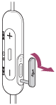 - Lorsque le casque est raccordé à une prise secteur ou à un ordinateur, toutes les opérations telles que la mise sous tension du casque, l’enregistrement ou la connexion à des périphériques Bluetooth et la lecture de musique sont impossibles.