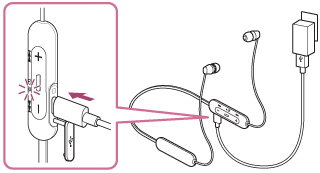 - 다음과 같은 이유로 충전 중에 헤드셋이 문제를 감지한 경우, 표시등(빨간색)이 반짝입니다. 이 경우 충전 온도 범위 내에서 다시 충전하십시오. 문제가 지속되는 경우 가까운 Sony 대리점으로 문의하십시오.