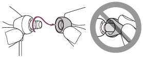 Гарнітура постачається з вушними вкладишами розміру M. Якщо гарнітура спадає або ви відчуваєте нестачу звуку низької частоти, то замініть вушні вкладиші на вкладиші іншого розміру, які щільно прилягатимуть і будуть зручними для вашого правого та лівого вух.