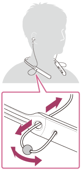 Glisați dispozitivul de reglare a cablului pentru a regla setul de căști pe cap.