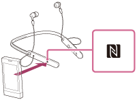 - Smartfón priložte k časti slúchadiel označenej značkou N. Nechajte slúchadlá priložené k smartfónu, kým smartfón nezareaguje.
