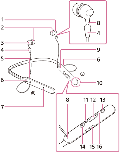 Anténa na pripojenie BLUETOOTH je vstavaná v slúchadlách. - Indikátor (modrý/červený)