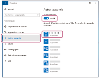 Si les appareils ne sont pas connectés, reportez-vous à la section «Connexion à un ordinateur apparié (Windows 10)».