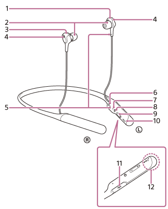 Pentru încărcarea setului de căști, conectați setul de căști la un computer sau la un adaptor de c.a. pe USB (comercializat separat) cu ajutorul cablului USB Type-C inclus. - Antenă Bluetooth încorporată