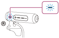 Győződjön meg arról, hogy a jelzőfény (kék) villog, miután elengedte a gombot. Hangos útmutatás hallható: „Power on” (Bekapcsolás).