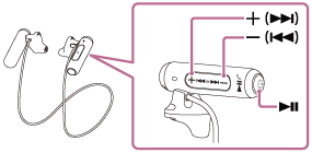 - Apăsați continuu până auziți un semnal sonor pentru a trece la începutul următoarei piese/începutul piesei anterioare (sau piesa curentă în timpul redării). După ce ați eliberat butonul, apăsați în maxim 1 secundă pentru a trece la începutul piesei următoare/anterioare și veți auzi un semnal sonor (puteți repeta această operațiune).