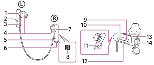 Se aprinde în roșu sau albastru pentru a indica puterea sau starea de comunicare a setului de căști. - Port micro-USB